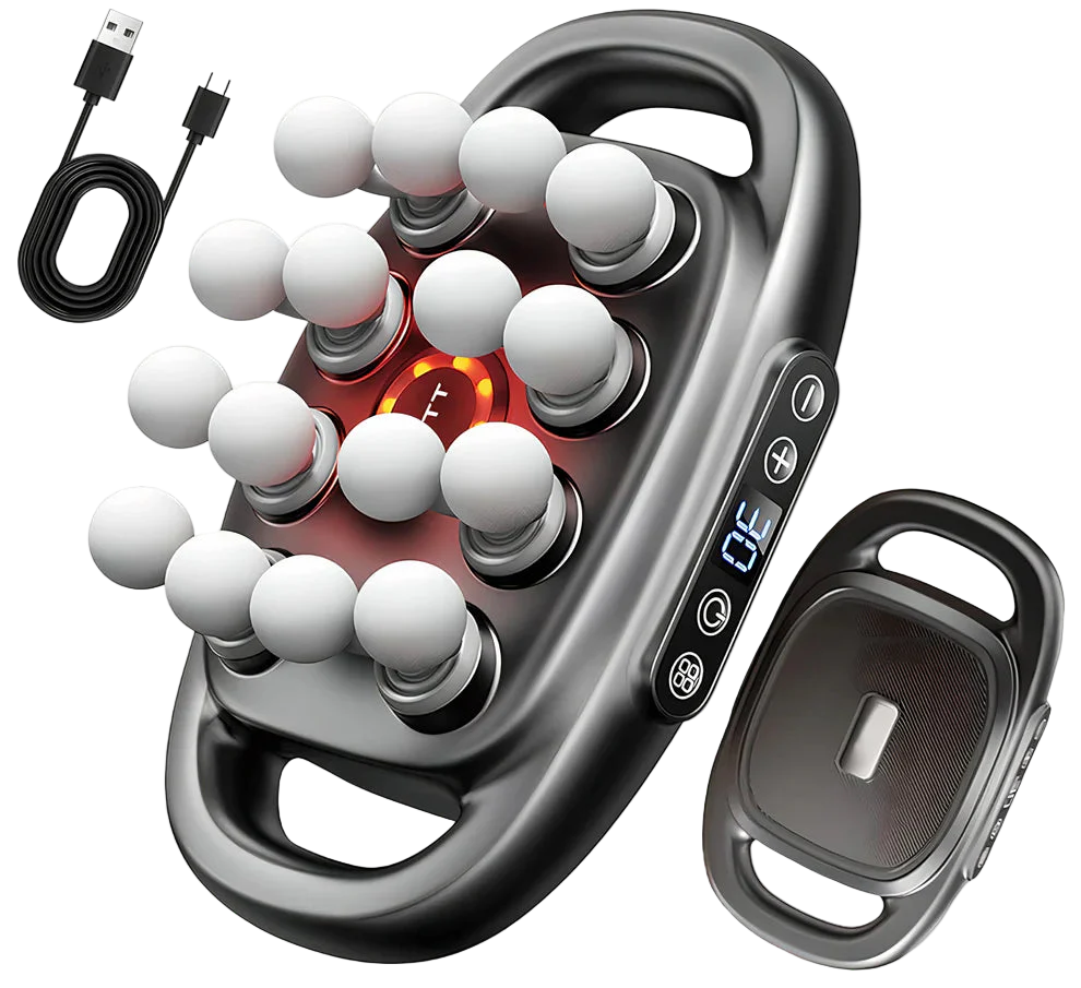 No! The 16-head massager is designed for 1 hand, 2 hands, or hands-free use. Simply place it on a flat surface — like a bed, floor, or couch — lean against it, and let it do the work for you.